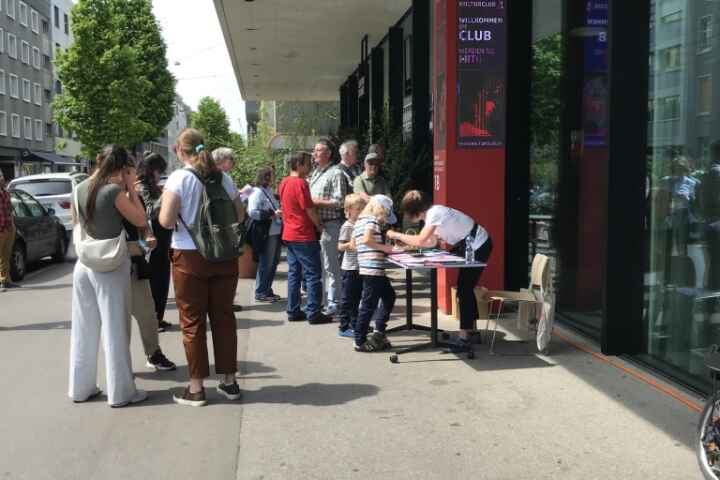Die Volunteers sind am Open House Wochenende vor Ort bei den Gebäuden im Einsatz. Ihre Hauptaufgabe ist es, die Besuchenden zu empfangen und über den Ablauf oder das Gebäude zu informieren.