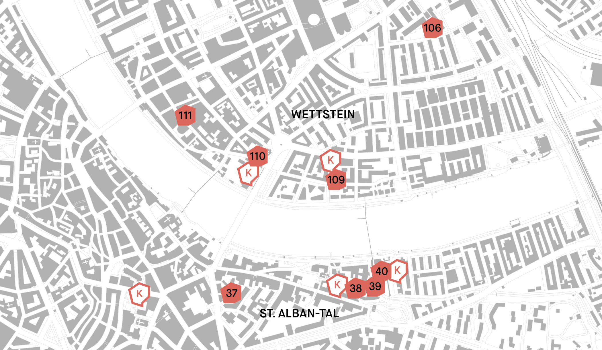 Zum Kids-Parcours gehören Gebäude im Wettstein-Quartier und St. Alban-Tal, sie sind im Gebäudeprogramm mit dem Kids-Symbol markiert. Du kannst so viele Gebäude miteinander kombinieren wie du magst. Achte aber auf die Öffnungszeiten der einzelnen Gebäude.