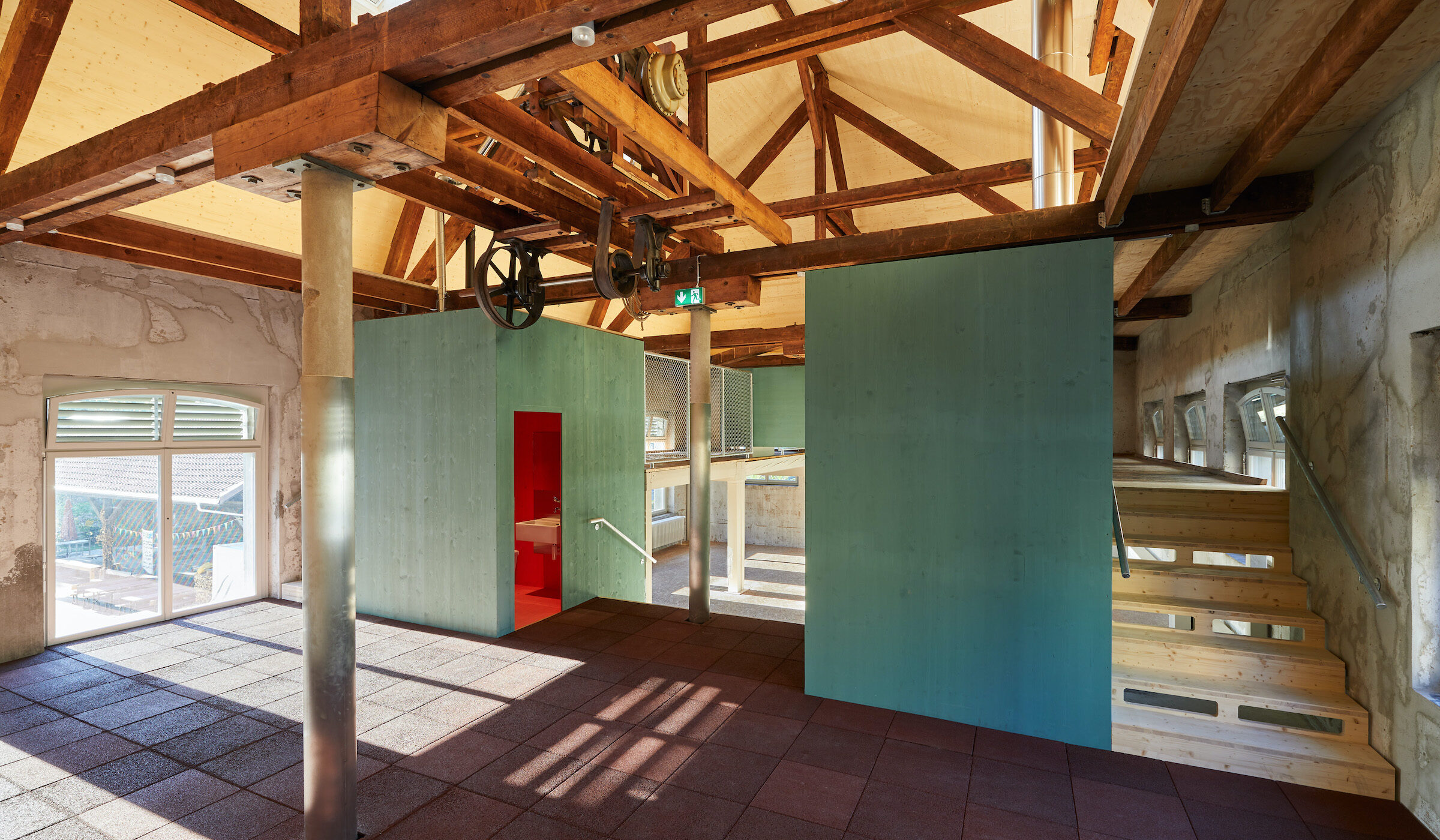 Das Pförtnerhaus wurde gleichzeitig mit dem „Aktienmühle AG“-Hauptgebäude gebaut und ist auch heute noch das Eingangsgebäude zum Areal. Durch den Umbau wurde die historische Anmutung des Gebäudes gestärkt und übersetzt diese in den neuen Elementen in eine zeitgenössische Sprache. Das Dach und die Fassade wurden erneuert, ein strassenseitiger Zugang im Erdgeschoss und die Vergrösserung der ehemaligen Stallfenster stellt eine Verbindung zum Strassenraum her. Der Umbau schaffte so Raum für Büros, ein Freizeitangebot für Kinder, ein Ladenlokal, sowie für ein kleines Gastronomieangebot.
