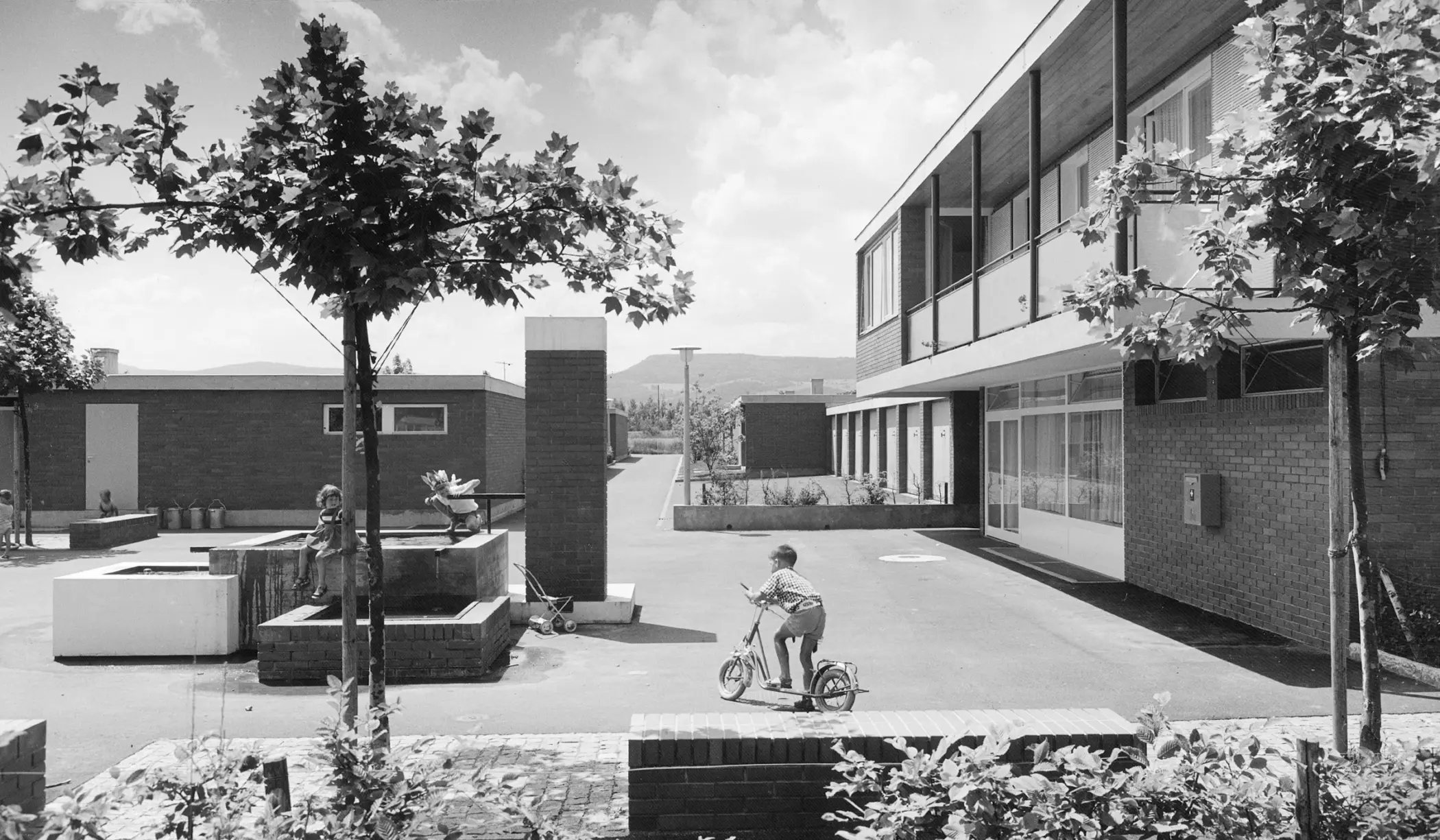 Die Siedlung ist eines der frühesten Beispiele theoretisch begründeter, verdichteter Bauweise in der Schweiz nach dem 2. Weltkrieg. Die 41 Einfamilienhäuser aus Sichtbackstein werden auch als Atriumhäuser bezeichnet. Das zentrale Atrium wird auf zwei Seiten vom Gebäude eingefasst, wodurch ein L-förmiger Grundriss entsteht. Die einzelnen eingeschossigen Häuser sind in Gruppen zusammengefasst, was an die Struktur eines Gewebes erinnert. Daher wird diese verdichtete Bauweise auch als Teppichbauweise bezeichnet. Die Siedlung, basierend auf einem sogenannten «Vertragsplan», entstand in drei Bauetappen. Baubeginn der ersten Etappe war 1959. Während dieser wurde unter anderem das Haus Nr. 5 errichtet, welches der Architekt Ulrich Löw mit seiner Familie fortan bewohnte. 1960 erfolgte die «1. Erweiterung» der Siedlung und Wolf Hunziker wurde mit der Aussenraumgestaltung und der Bepflanzung einzelner Wohngärten beauftragt. Fertig gestellt wurden die letzten Gebäude der «2. Erweiterung» im Jahre 1962.