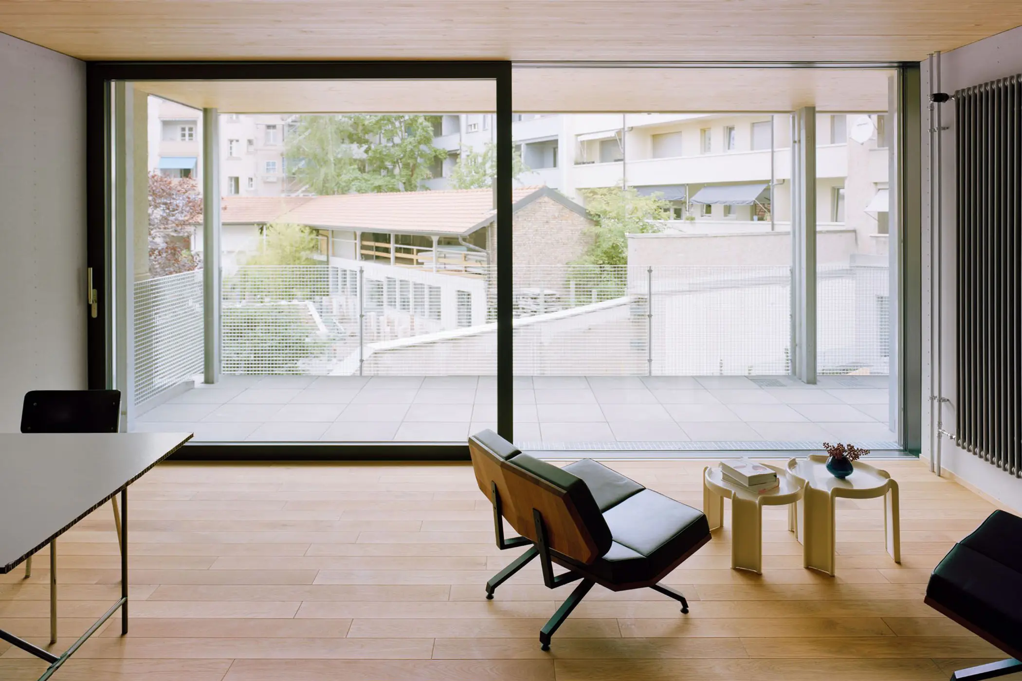 Die gesamte Aufstockung sowie sämtliche Einbauten folgen bestmöglich der Idee von «Urban Mining». Dieser Idee liegt die These zugrunde, dass alle zur Herstellung eines Gebäudes benötigten Ressourcen, wenn möglich wiederverwendbar, wiederverwertbar oder kompostierbar sein sollen. Unter diesen Voraussetzungen wurde das Haus geplant und gebaut. Es werden deshalb generell keine Bauteile fest mit dem Untergrund verklebt, sondern geschraubt und demontierbar ausgebildet. Getreu diesem Gedanken sind unter anderem die Vollholzböden geschraubt, die Chromstahlbäder fugenlos montiert und die Elektro- und Heizinstallationen additiv aufgesetzt.