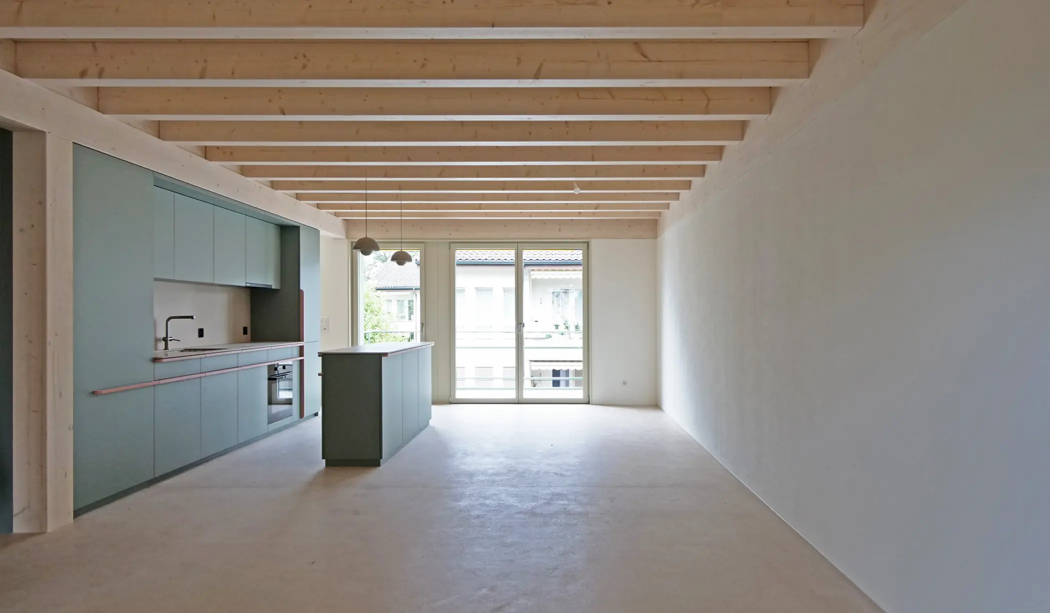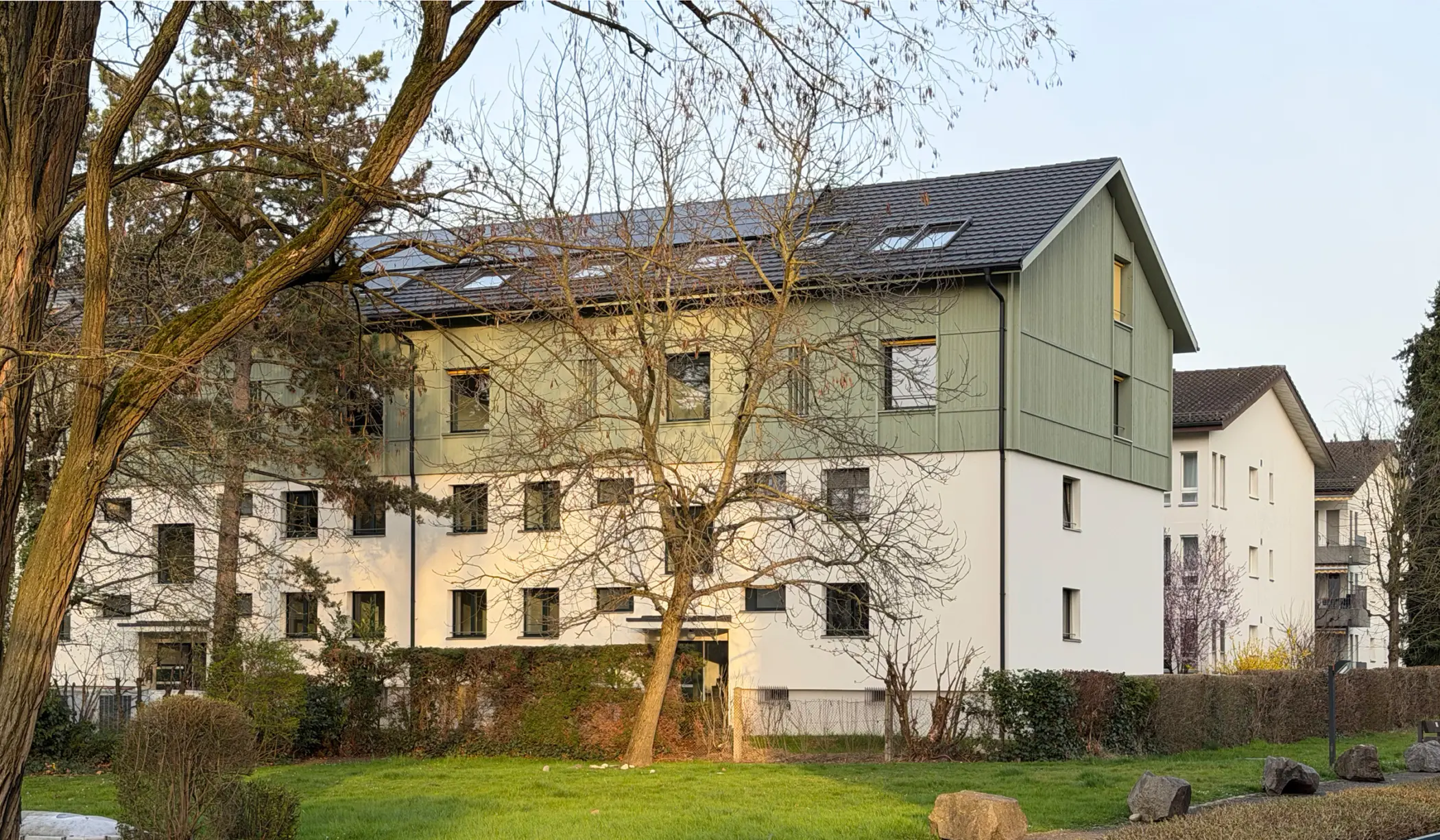 Die Nachbarschaft am Langenhagweg in Allschwil ist geprägt von einer heterogenen Bebauung mit Reihenhäusern, Gewerbebauten und Mehrfamilienhäusern aus den 1950er-Jahren. Die Liegenschaft diente ursprünglich als einfache Arbeiterwohnungen einer Gärtnerei. Trotz des veränderten Kontexts sind die pragmatischen Grundrisse und der Anspruch an bezahlbaren Wohnraum erhalten geblieben. Das Projekt knüpft daran an: Die bestehenden 3.5-Zimmer-Wohnungen werden mit minimalen Eingriffen modernisiert. Eine zweigeschossige Aufstockung in Holzbauweise ergänzt den Wohnungsspiegel um vier 5.5-Zimmer-Maisonettewohnungen für Familien. Ihre Grundrisse übernehmen die Effizienz der darunterliegenden Wohnungen. Nachhaltigkeit zeigt sich im ressourcenschonenden Holzbau, Wärmepumpe, Photovoltaik und der Wiederverwendung von Bauteilen – mit dem Ziel, Kosten und Mieten niedrig zu halten.