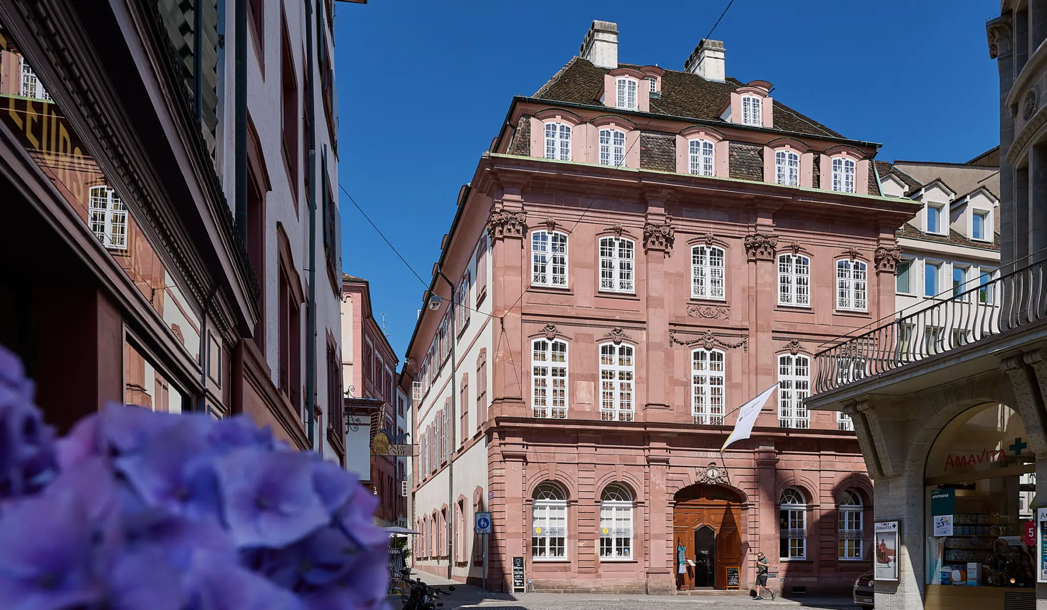 Von Architekt Samuel Werenfels 1771 bis 1776 errichtet, diente das Stadthaus als Postgebäude und Sitz des Direktoriums der Kaufmannschaft. Noch heute lässt sich an der durch Kolossalpilaster gegliederten Fassade der Führungsanspruch der Kaufmannschaft in Wirtschaft und Politik ablesen. 1875 gelangte das ehemalige Posthaus in den Besitz der neu formierten Bürgergemeinde. Der Charakter des Ensembles Stadthaus mit Innenhof und Kutschenremise an der Schneidergasse 2 wurde auch beim Umbau in den 1960er Jahren nicht wesentlich verändert. Die weitgehend originale Ausstattung in der Beletage mit Vestibül, Bürgergemeinderatssaal, Bürgerratssaal und Grünem Zimmer machen das Stadthaus zu einem der prunkvollsten Basler Bauten des 18. Jahrhunderts.