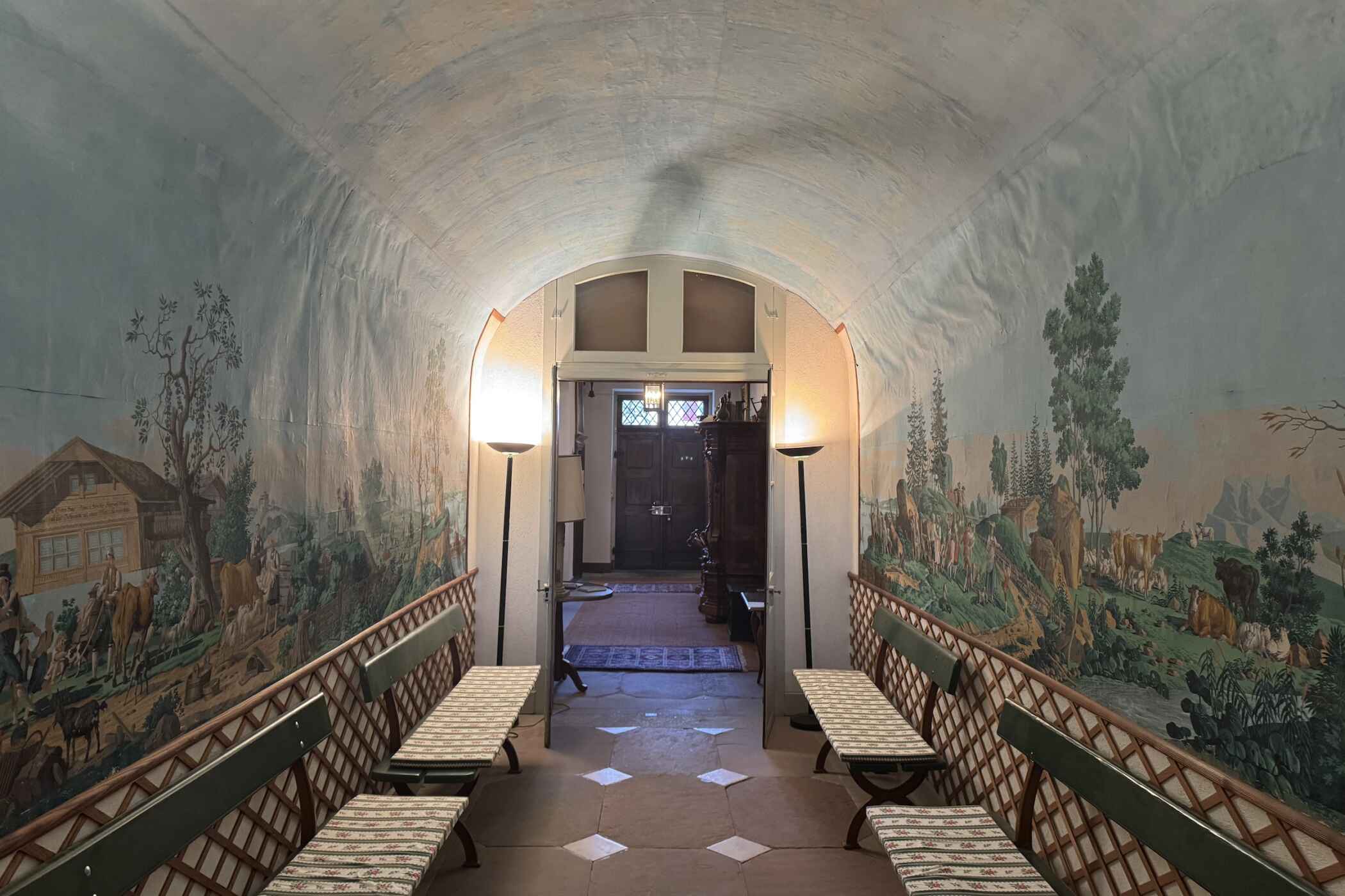 In einem gepflegten, englischen Landschaftsgarten befindet sich der stattliche Bischöfliche Hof, der eine wichtige Ergänzung zu den Domherrenhäusern am Domplatz bildet. Das um 1720 erbaute, barocke Herrschaftshaus wurde vom Basler Bandfabrikanten Johann Rudolf Forcart-Weiss mit einer eindrücklichen Gartenanlage (nach 1811) ergänzt. Im Innern ist die sogenannte Helvetia-Tapete von 1819 bedeutend. Sie stellt Szenen aus dem Hirtenleben dar. 1851 wird die Liegenschaft aufgestockt und umgebaut. Noch bis ins 20. Jahrhundert blieb die ausgedehnte englische Parkanlage erhalten. Ab 1911 werden Teile des Aussenraums überbaut. Das Haus ist heute im Privatbesitz und die oberen Geschosse werden bewohnt.