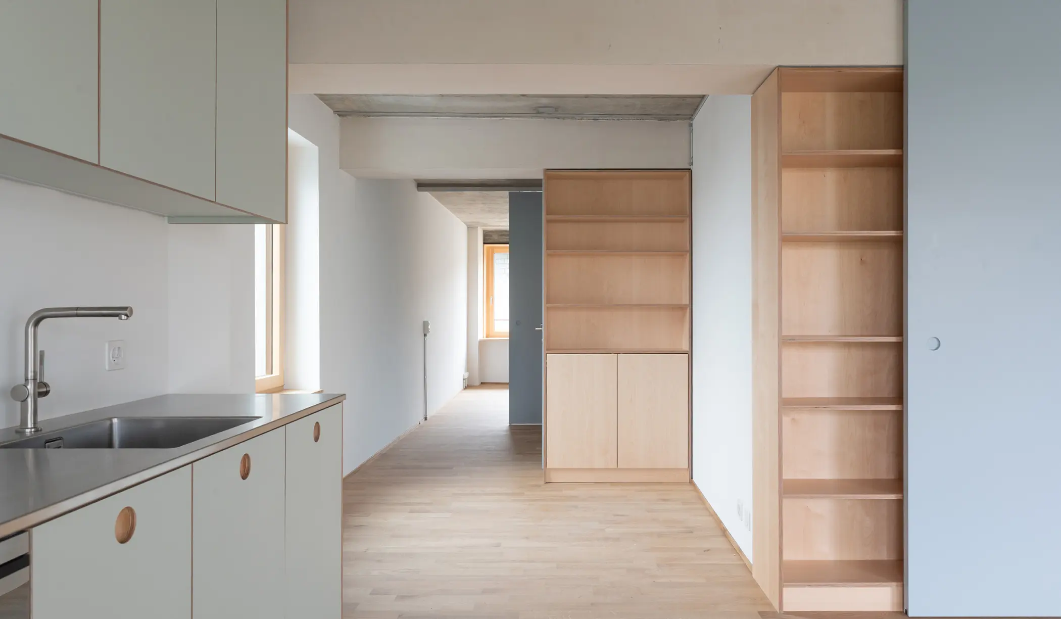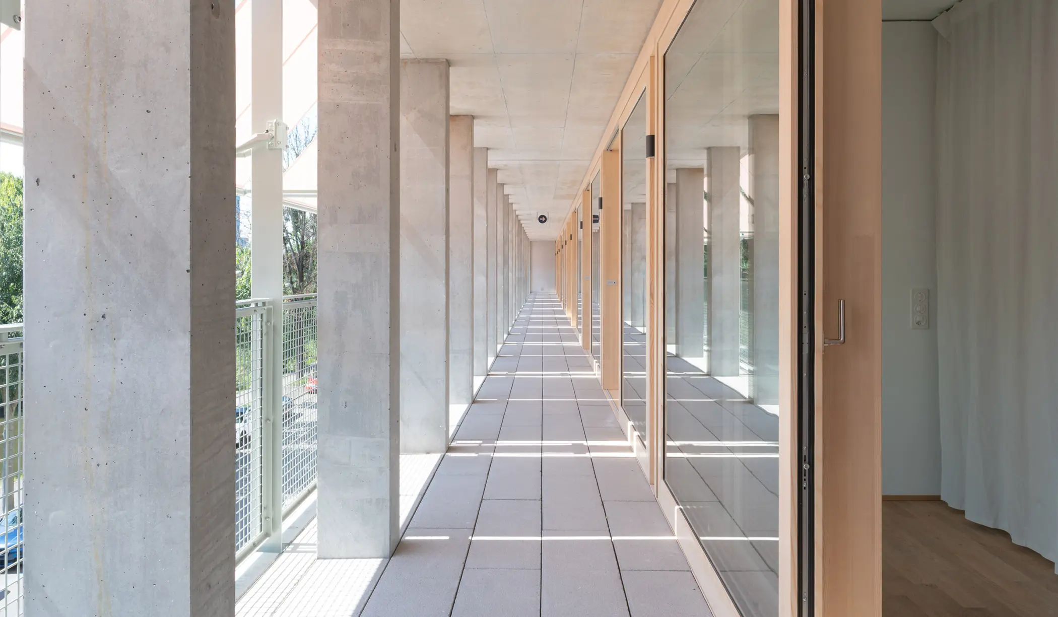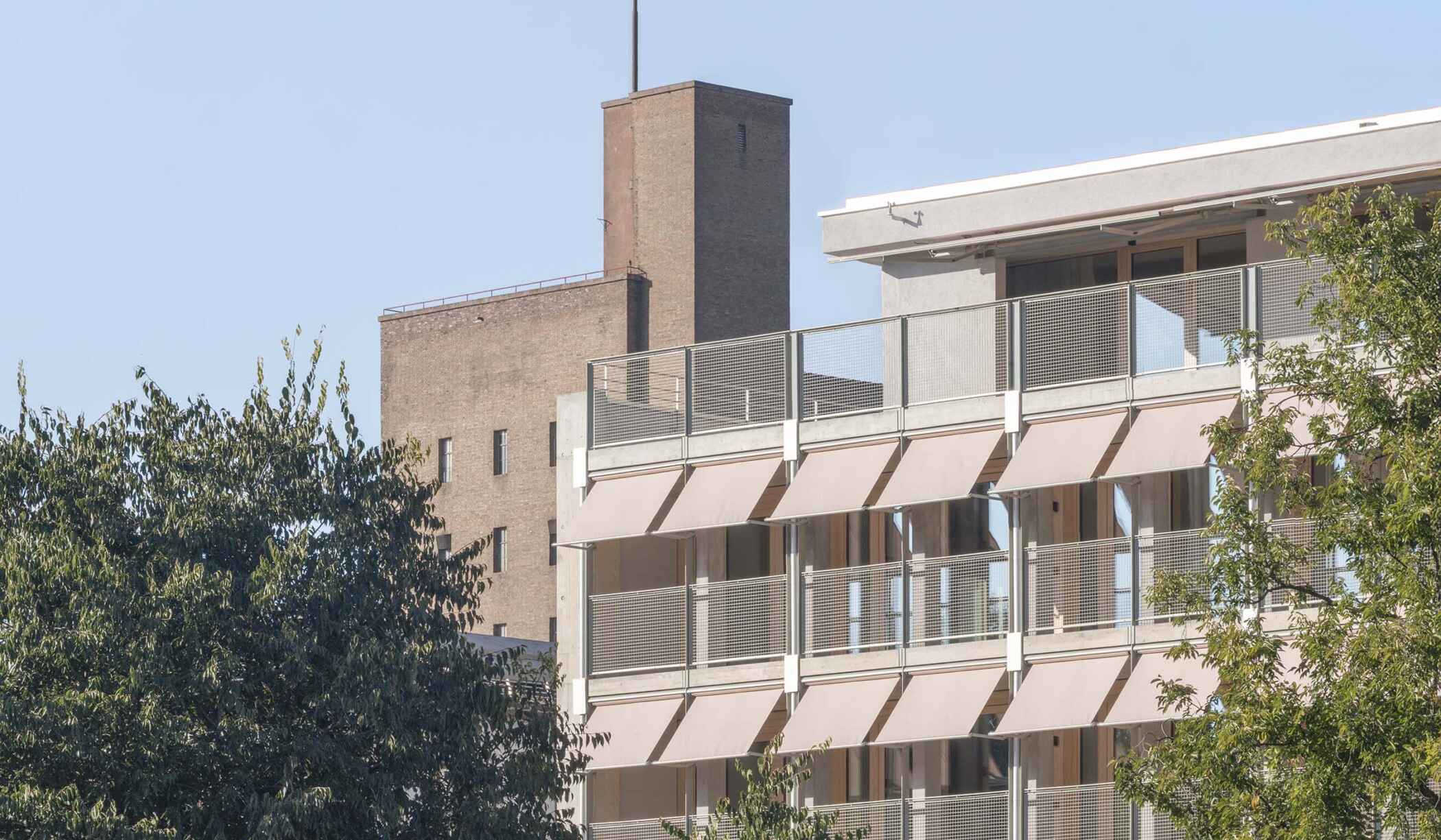 CoDeck – ein Bürohaus aus den 60ern, das in Wohn- und Musikräume umgebaut wurde. Im Rahmen des Wohnbauprogramms „1000+” hat der Kanton Basel-Stadt 28 kompakte und preisgünstige Wohnungen mit Gemeinschaftsräumen sowie rund 700 m² Musik- und Gewerbeflächen für den Verein tonRaum realisiert. Das Projekt umfasst die Transformation des ehemaligen Amtsgebäudes in ein nachhaltiges, sozial durchmischtes Wohnhaus und die Umnutzung der Untergeschosse in Musikräume. Verschiedene Wohnungstypologien und eine starke Einbindung in den städtischen Kontext ermöglichen ein lebendiges Haus. Die bestehende Tragstruktur aus Beton wurde ertüchtigt. Das neue Raumprogramm wurde in Leichtbau aus langlebigen, ökologischen Materialien ausgebaut. Die Fassaden aus Holz und Metall reagieren situativ auf die Umgebung.