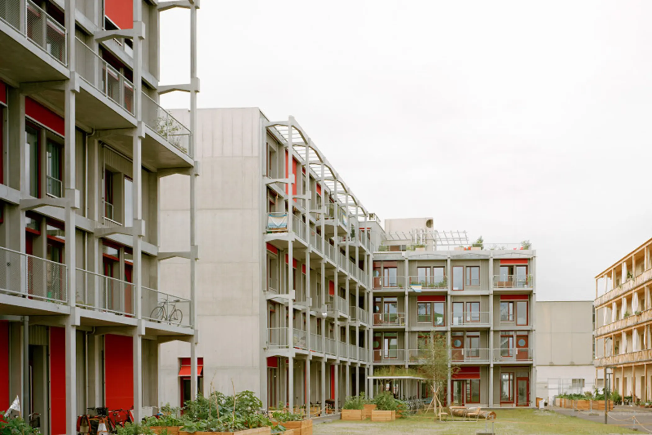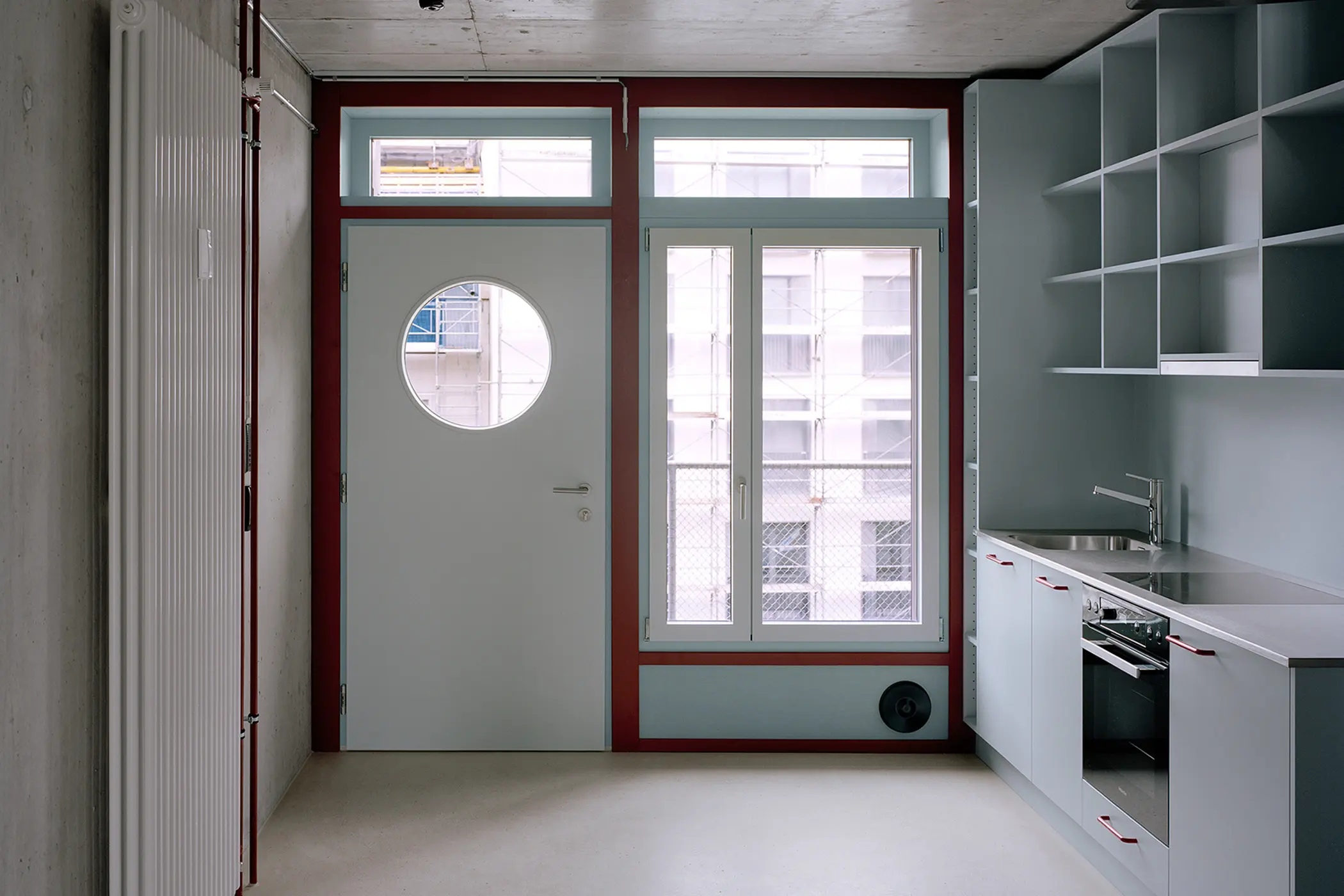 Gemeinschaftsräume für alle Hausbewohner ergänzen die sehr einfach und sparsam ausgebauten Wohnungen und Ateliers, welche mehrheitlich zwei-, drei- oder viergeschossig sind.