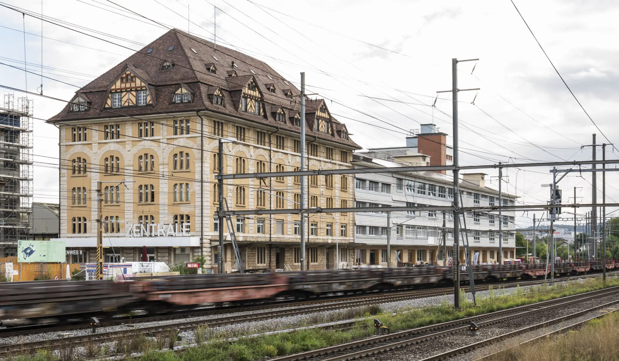 Die ehemalige Coop Verteilzentrale in Pratteln verwandelt sich in ein gemeinnütziges Quartier zum Wohnen und Arbeiten. Der bestehende Gewerberiegel entlang des Gleisfelds wird saniert und weitergenutzt.