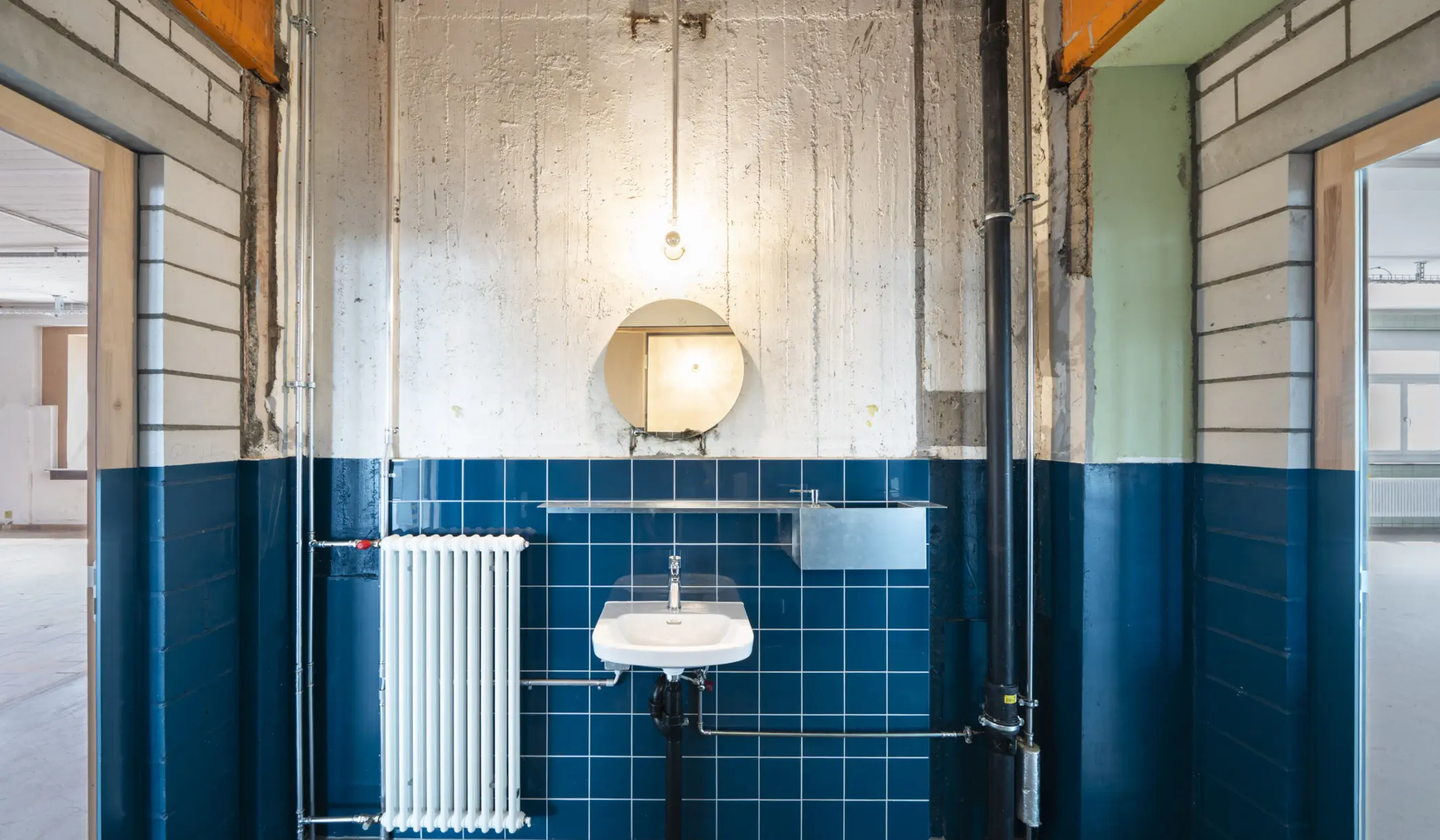 Die Bauten werden entrümpelt, Grundrisse, Adressierung und Erschliessung neu geordnet. Zeitgemässe Haustechnik, ertüchtigte Statik und eine Fassade aus wiederverwendeten Bauteilen machen den Gebäudezug bereit für seinen nächsten Lebenszyklus.