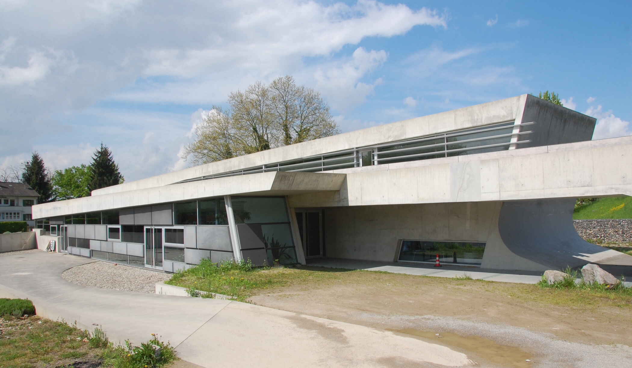 Landscape Formation One – so hat die irakisch-britische Architektin den baden-württembergischen Pavillon für die Landesgartenschau „Grün 99“ genannt. Der Pavillon ist 140 Meter lang, integriert sich physisch und formal in die topografisch abwechslungsreiche Gartenlandschaft und wächst aus der Geometrie des ihn umgebenden Wegenetzes förmlich heraus. Vier parallele und teilweise miteinander verbundene Räume sind zwischen sich in der Breite und in der Höhe verzweigenden Wegen ausgebildet. Die Grenzen zwischen der äußeren Hülle des Gebäudes und seiner Umgebung sind weich und fließend gestaltet. Besuchende können den geschwungenen, von Sichtbeton beherrschten Baukörper, betreten, ihn durchqueren oder darüber hinweglaufen.