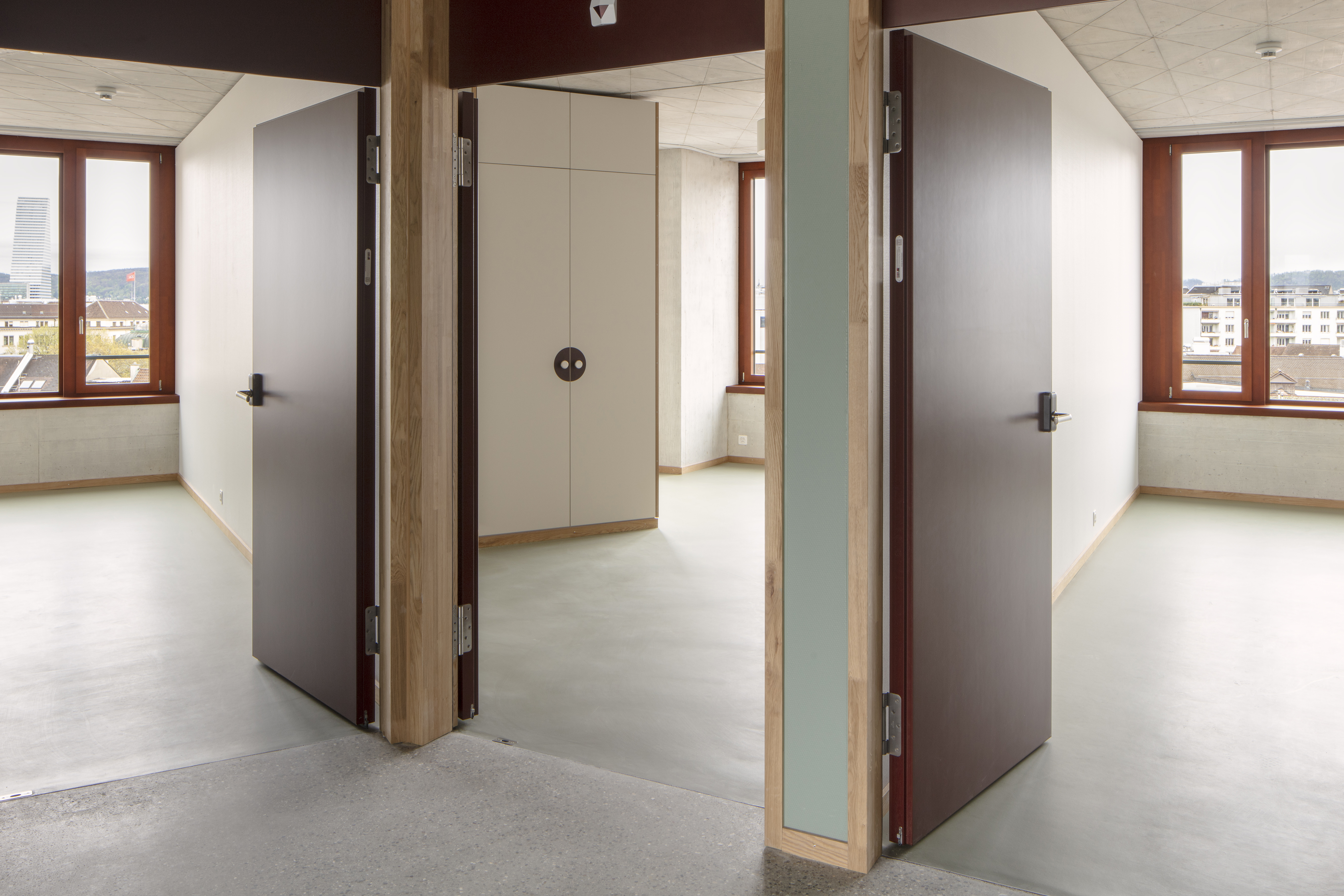 Ein dreiflügliger Neubau behauptet sich selbstbewusst im engen Innenstadtgefüge und bildet mit strassenbegleitenden Riegeln und einem mittigen Hoftrakt geschützte, begrünte Höfe. Das auf grosse Spannweiten ausgelegte Betonskelett ermöglicht flexible Grundrisse ohne störende Stützen – ideal für die Mobilität sehbehinderter Menschen und zukünftige Anpassungen. Alle Wege führen zum Tageslicht; dort liegen Gemeinschaftsräume und Treppen. Reliefierte Decken verbessern Akustik und Atmosphäre. Als Standort der irides AG verbindet das Haus Wohnen, Pflege, Arbeit und Teilhabe unter einem Dach.
