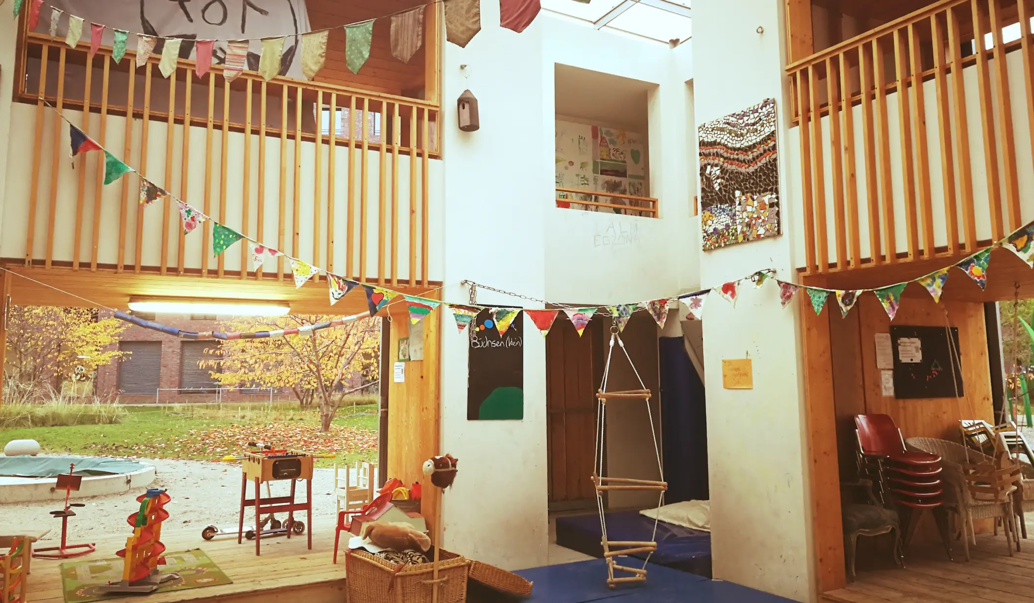 Der hochwertige Lebens- und Arbeitsraum beherbergt Familienwohnungen, zwei Wohngemeinschaften, vier Gastwohnungen sowie separate Übungsräume, ein Tonstudio, eine Spielhalle für Kinder und eine Cafeteria. Die Musikzimmer sind in die Wohnungen integriert und bis 65 Dezibel schallgedämmt. Aus dem ursprünglichen Konglomerat verschiedener funktionaler Gebäude mit eigenständigen Typologien wurden spezifische, räumlich architektonische Stimmungen gedacht und entwickelt.