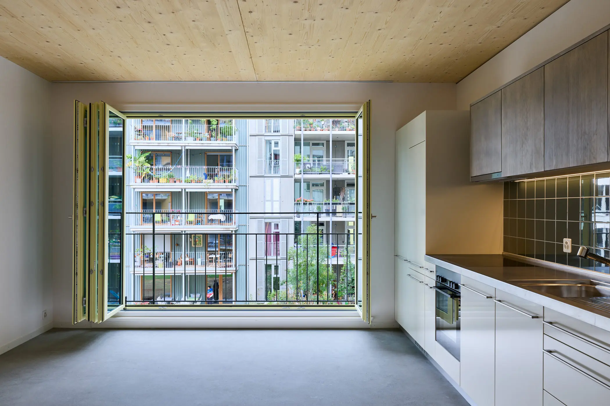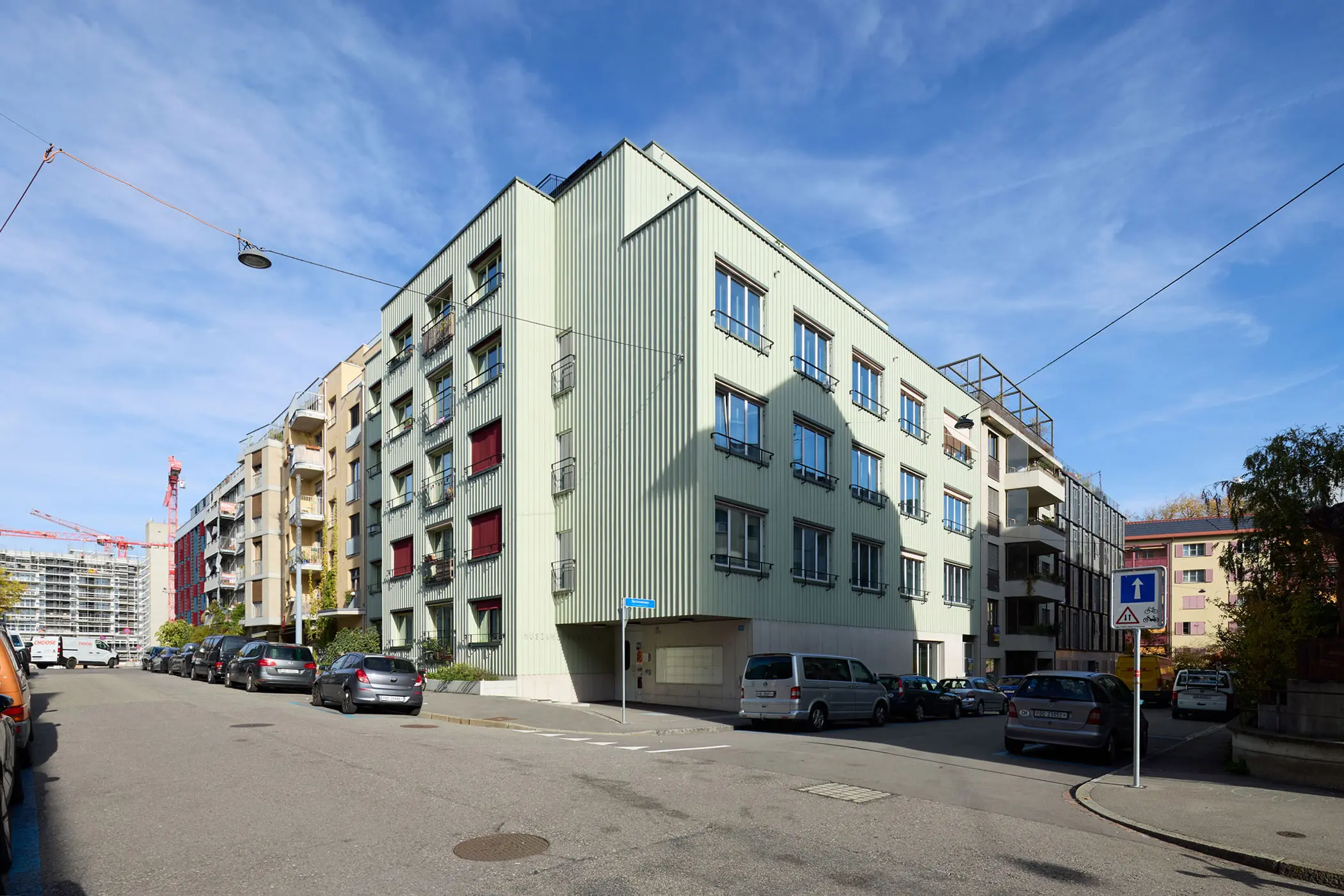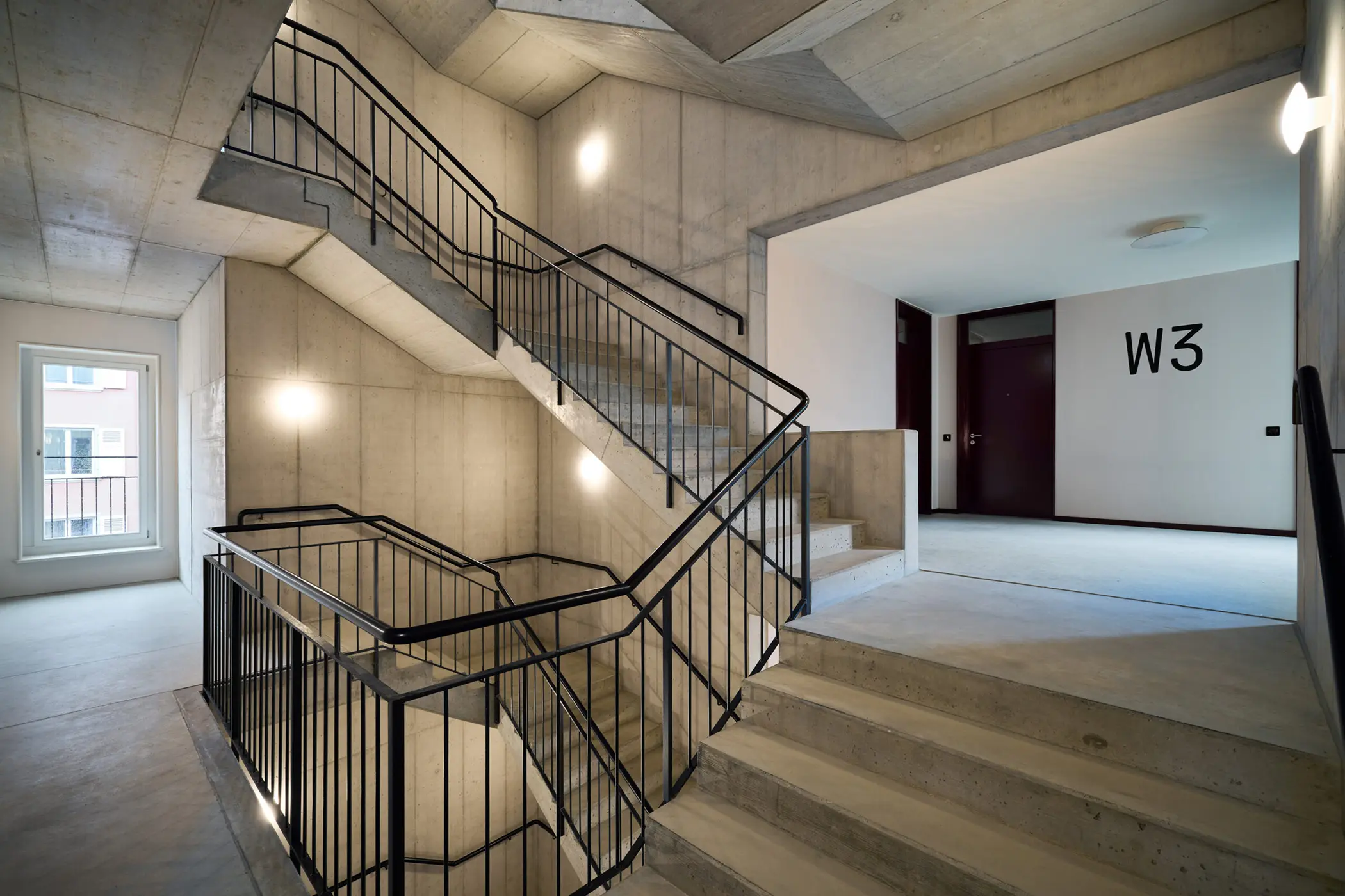 Im Erdgeschoss sowie auf dem Dach befinden sich mit dem Gemeinschaftssaal und der Dachterrasse mit Pergola die gemeinschaftlich genutzten Flächen. Dem Projekt liegt ein umfassendes Nachhaltigkeitskonzept zu Grunde und wird weitgehend als Holzbau konzipiert.