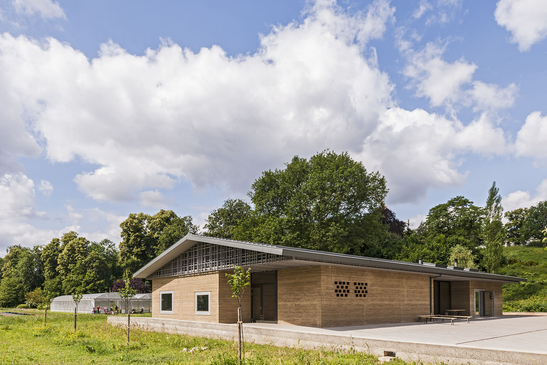 Das 2012 fertig gestellte Gebäude der Architekten Barcelo Baumann für die Naturbildung in den Merian Gärten zeichnet sich durch Aussenwände aus massivem Lehm aus. Dennoch wirkt der Bau leicht, durch die grossen Fenster strömt das Licht und die Terrasse führt ins Grüne. Mit seinem eigenen Hofplatz liegt das Lehmhaus zurückgezogen und privat. Die Führungen anlässlich Open House Basel geben Einblicke in das Bauen mit Stampflehm, einem alten Baustoff, der unter anderem aufgrund seiner Nachhaltigkeit in den letzten Jahren ein Comeback erfährt.