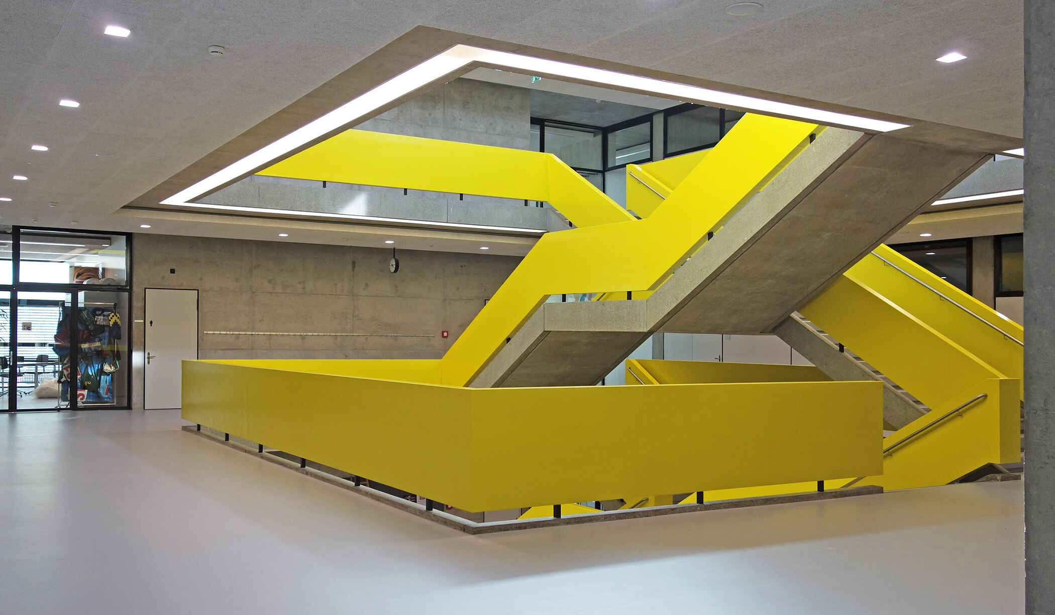 Die grosse konzeptionelle Herausforderung der Sanierung bestand darin, die Anliegen der Denkmalpflege mit den technischen Anforderungen an ein heutiges Schulgebäude in Einklang zu bringen. Der Erhalt von Gebäudestruktur und Fassadenbild wurde dabei als oberstes Ziele definiert. Dank moderner Materialien gelang es, fast 50 Jahre später die Ideen der Architekten Rasser + Vadi wieder erlebbar zu machen. 2014 wurde die Sanierung durch den Baselbieter Heimatschutz ausgezeichnet.