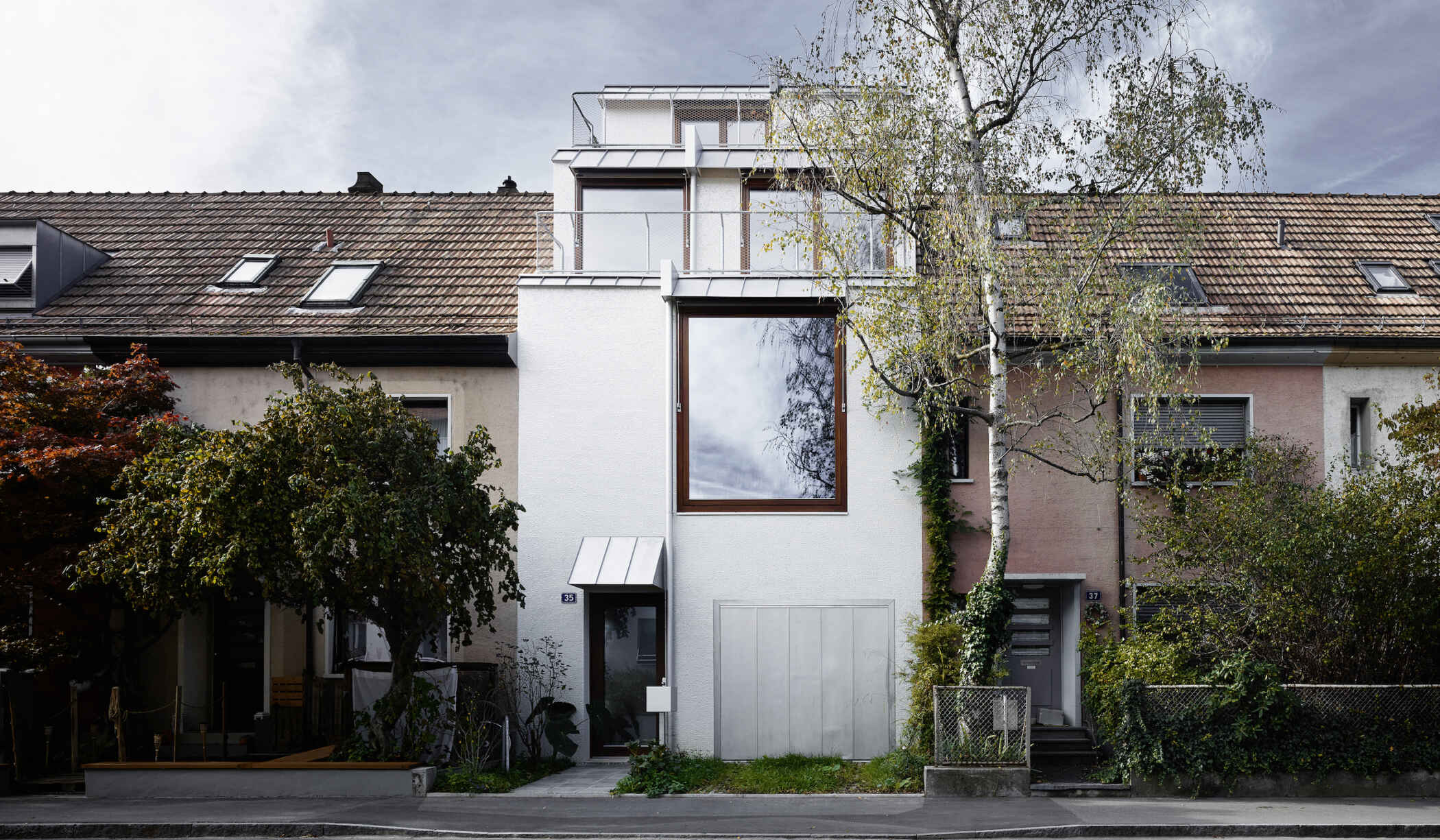 Der Ersatzneubau lotet die Möglichkeiten aus, innerhalb der zeitgenoössischen Architektursprache und trotzt der sehr beengten Grundstücksituation die Qualitäten eines traditionellen Stadthauses wiederzufinden: räumliche Grosszügigkeit, vielfältige Beziehung zum Aussenraum, unaufgeregte aber dennoch dekorativ präsente Formsprache und Materialisierung.