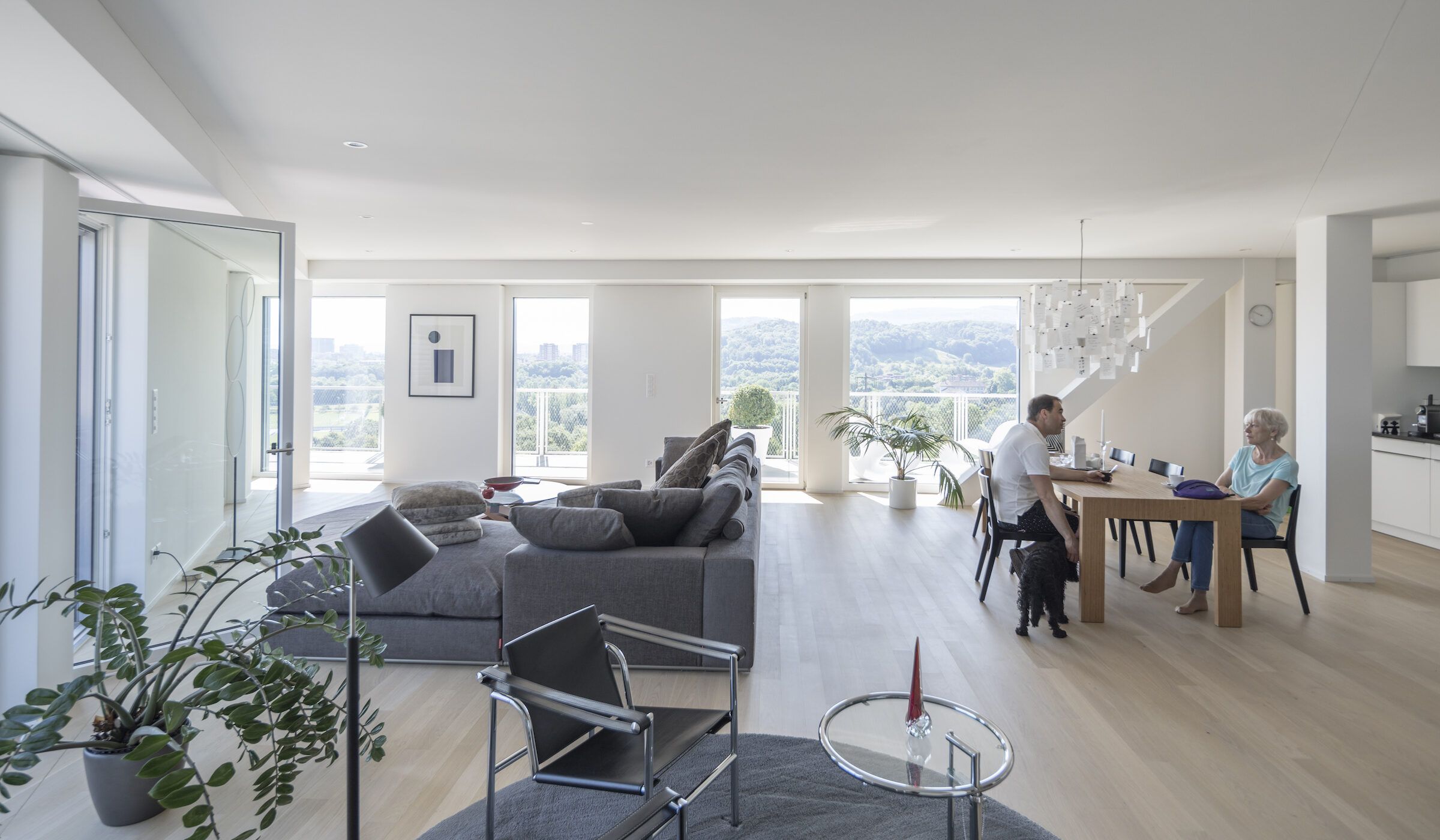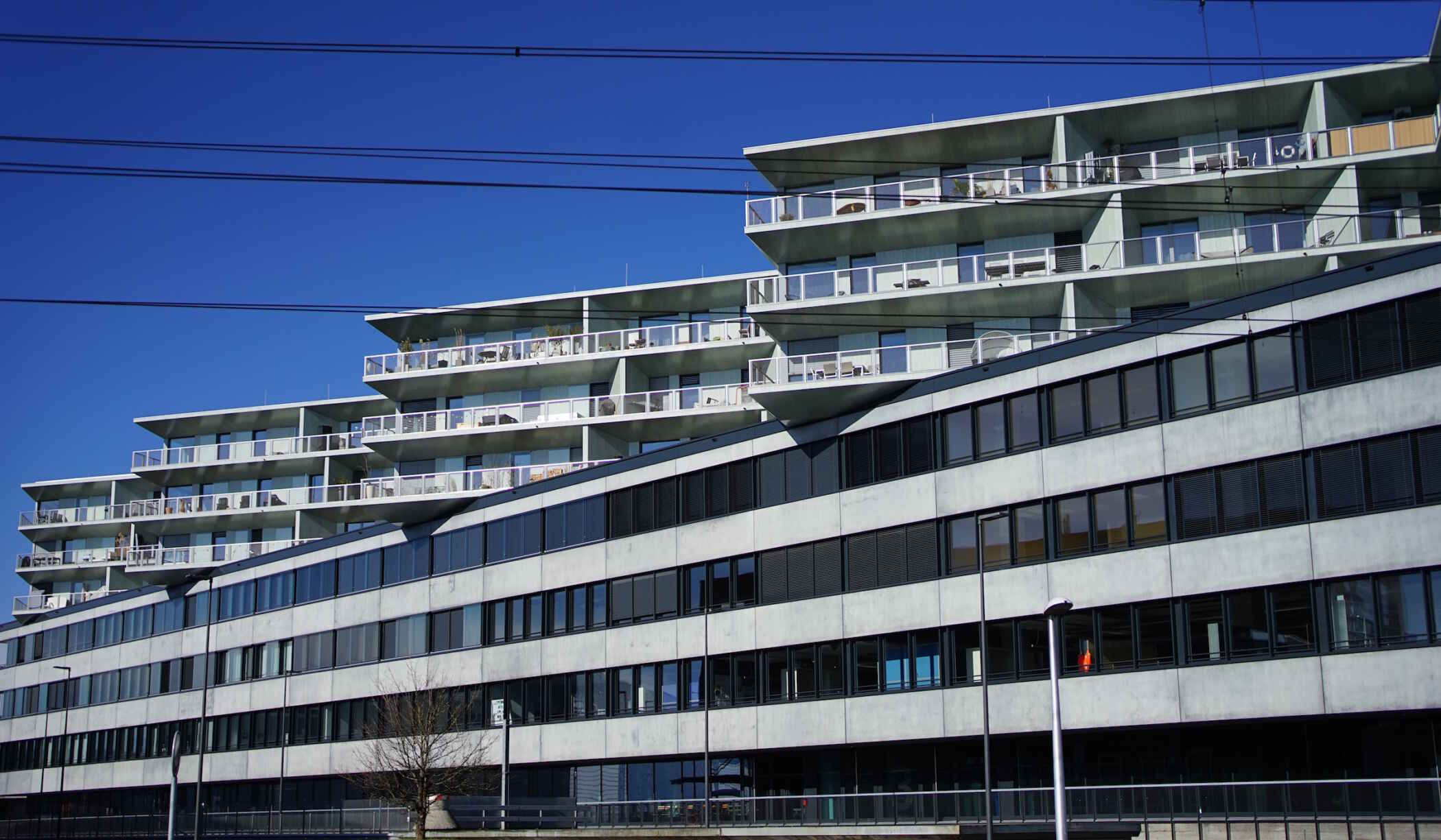 Die bestehende, viergeschossige Stahlbetonstruktur wird mit einem dreigeschossigen Leichtbau aufgestockt, der ausschliesslich Wohnungen enthält. Die Aufstockung präsentiert sich in einer städtebaulich markanten Zickzackform. Dies geht auf den simplen Gedanken der Architekten zurück, den Grundriss in fünf Einheiten zu unterteilen und diese ins richtige Licht zu drehen. Dadurch sind kleinere Einheiten entstanden, ähnlich Punkthäusern – aber jetzt eben auf dem Dach. Im dritten Geschoss des bestehenden Baus sind die Flächen vorwiegend für modernes Wohnen genutzt. Vom Erdgeschoss bis zum zweiten Obergeschoss wurde Raum für flexible Büro- und Gewerbenutzungen geschaffen.