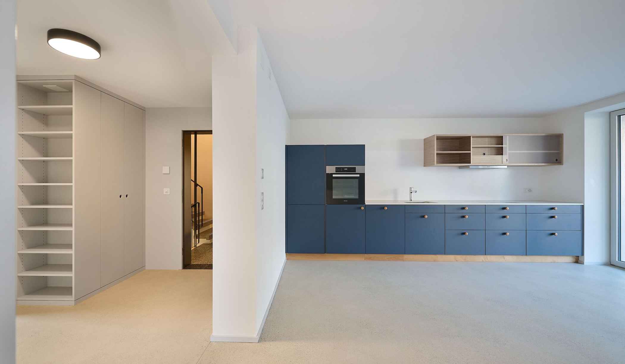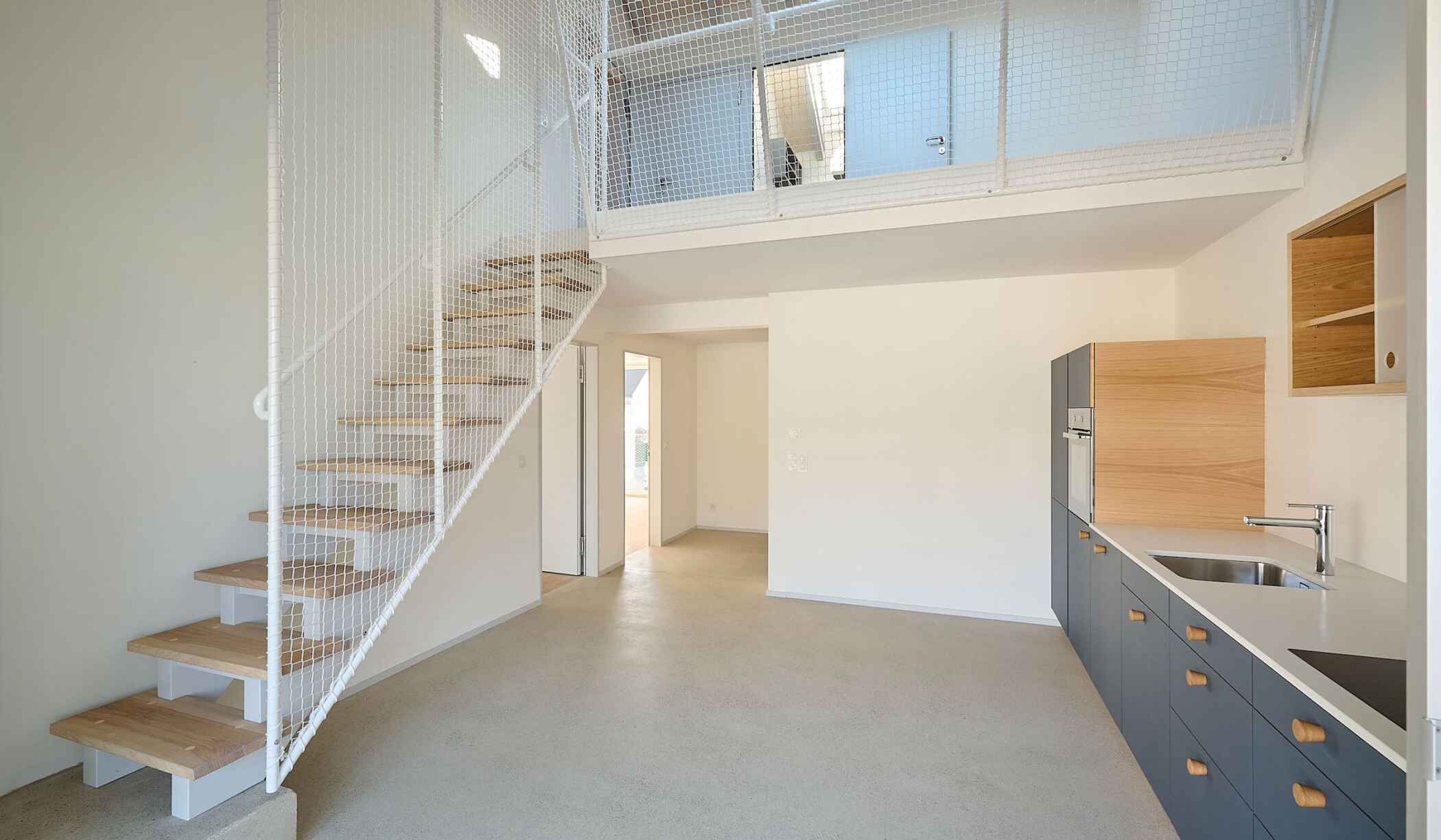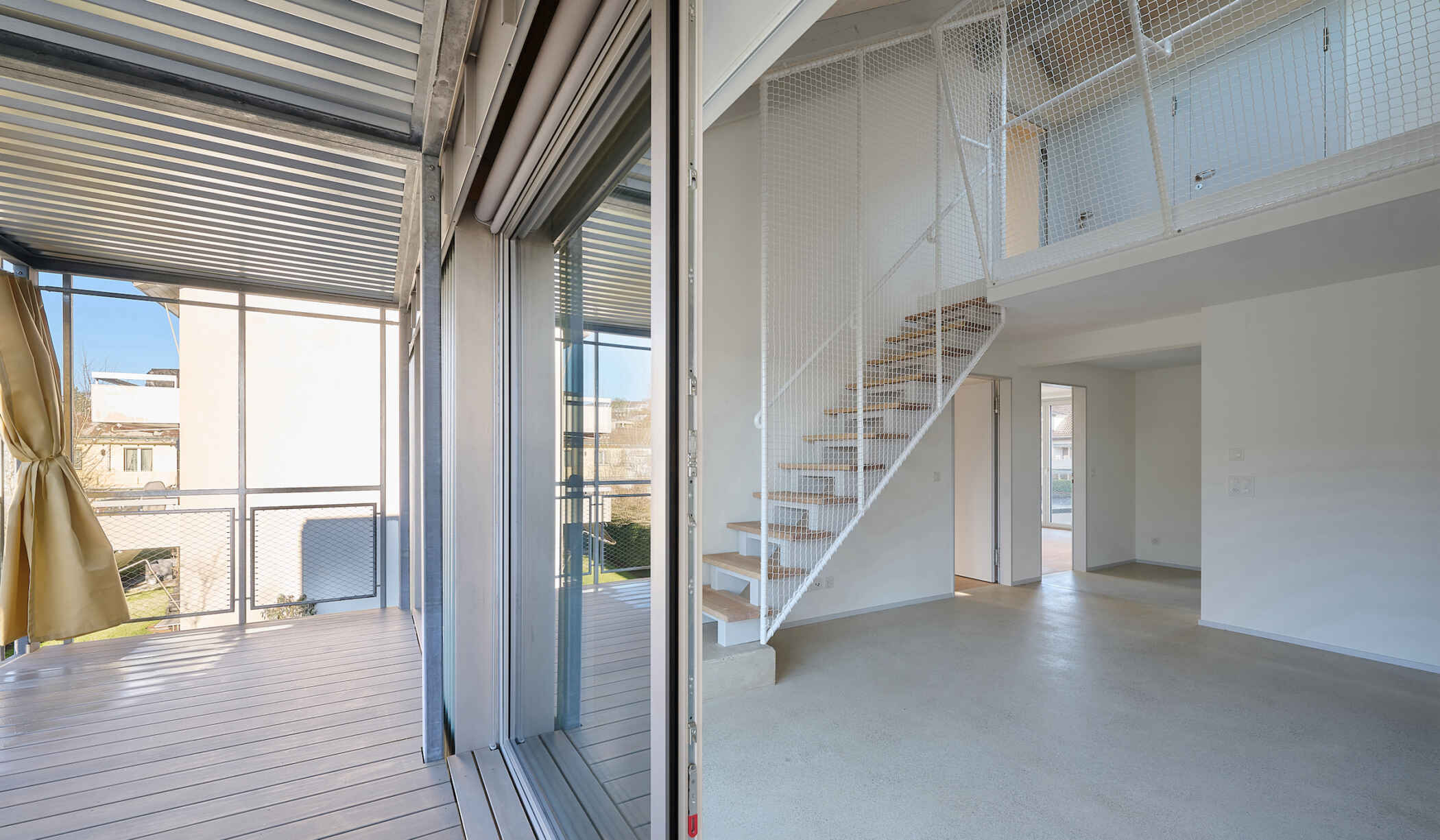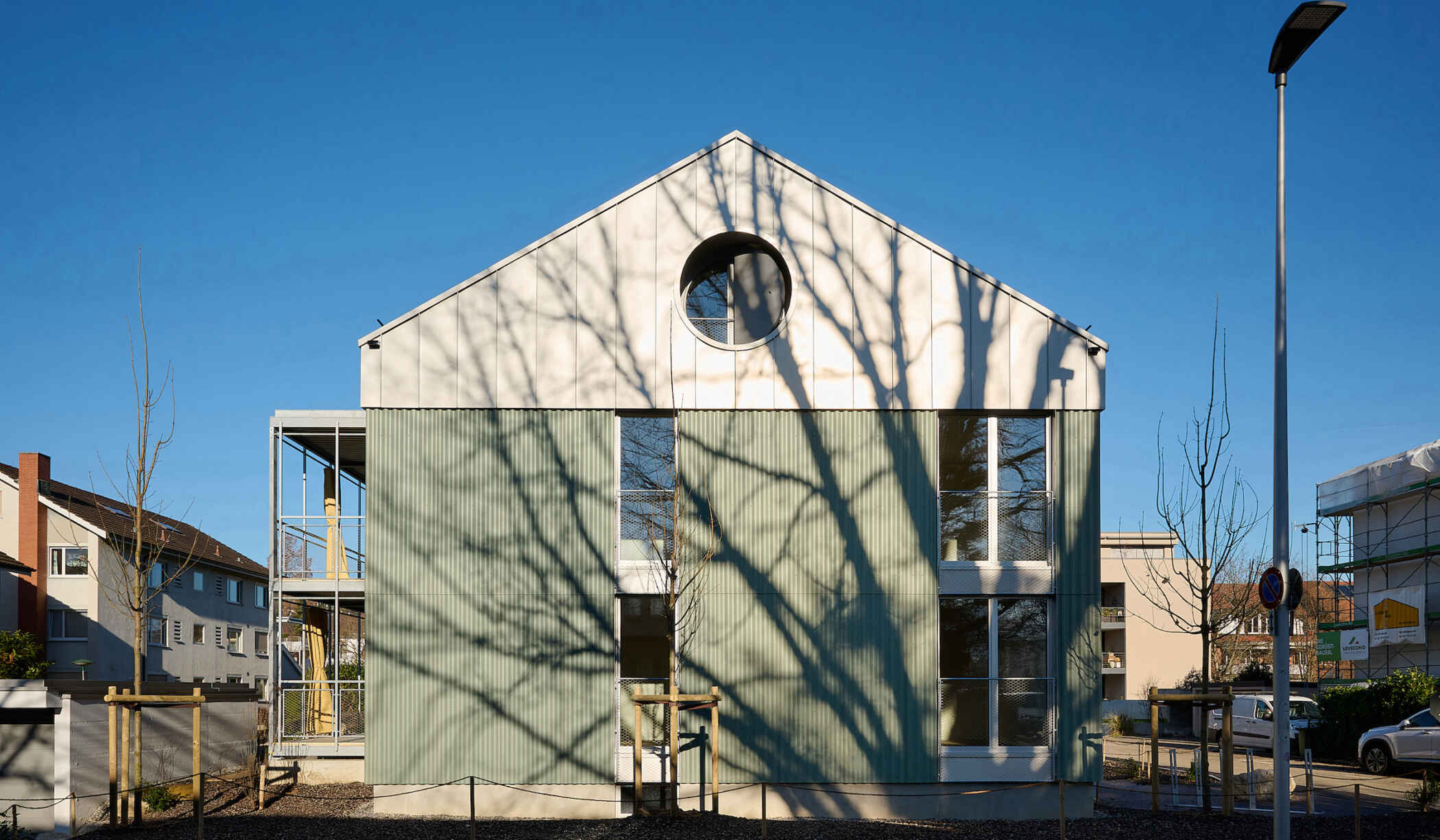 Das Mehrfamilienhaus aus den 50er Jahren wurde umfassend saniert. Das Gebäude erhielt einen komplett neuen Auftritt. Die Grundstruktur bestehend aus Geschoss- und Maisonettewohnungen wurde erhalten. Die engen Grundrisse der Wohnungen wurden aufgeweitet durch einen grosszügigen Eingangsraum mit Garderobe und Bad sowie einer offenen Küche im Wohnraum. Die Vergrösserung der Fensteröffnungen in raumhohe Verglasungen unterstreicht dies. Die Gebäudehülle ist energetisch saniert, eine PV-Anlage bedeckt die gesamte Dachfläche und eine Erdsonden-Wärmepumpe liefert die benötigte Energie. Ein neuer gartenseitiger Balkonvorbau in Stahl ergänzt das kompakte Volumen und bietet grossräumige Aufenthaltsfläche im Freien.