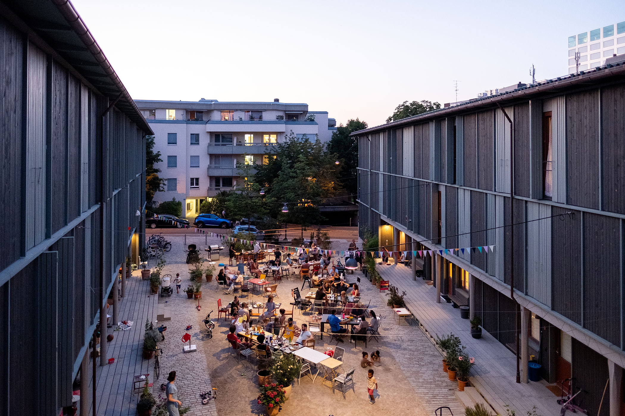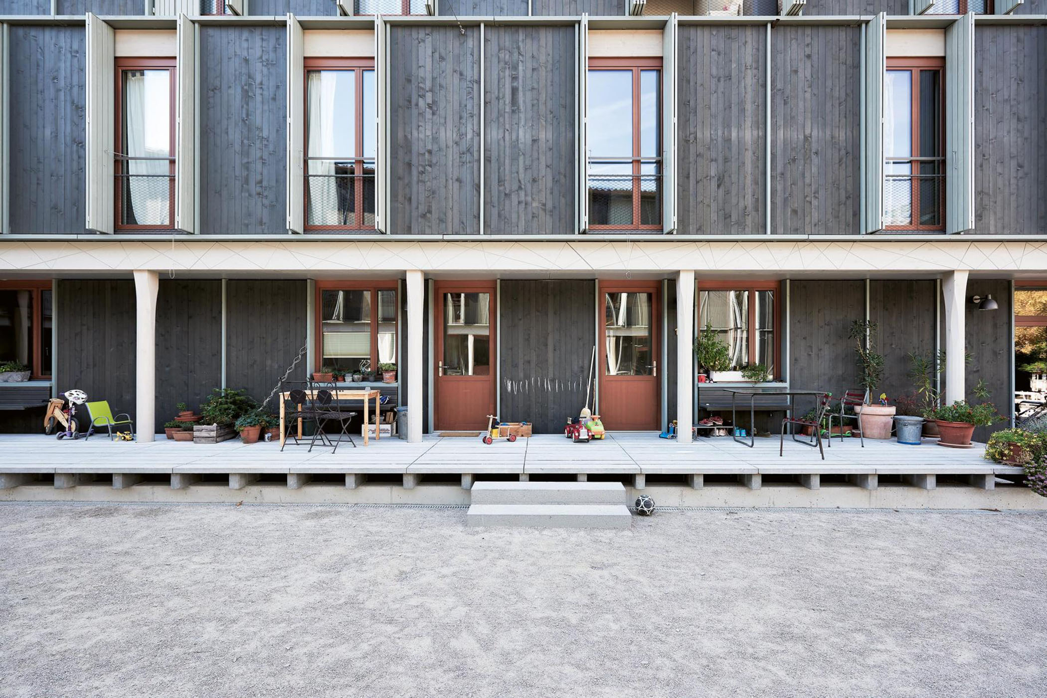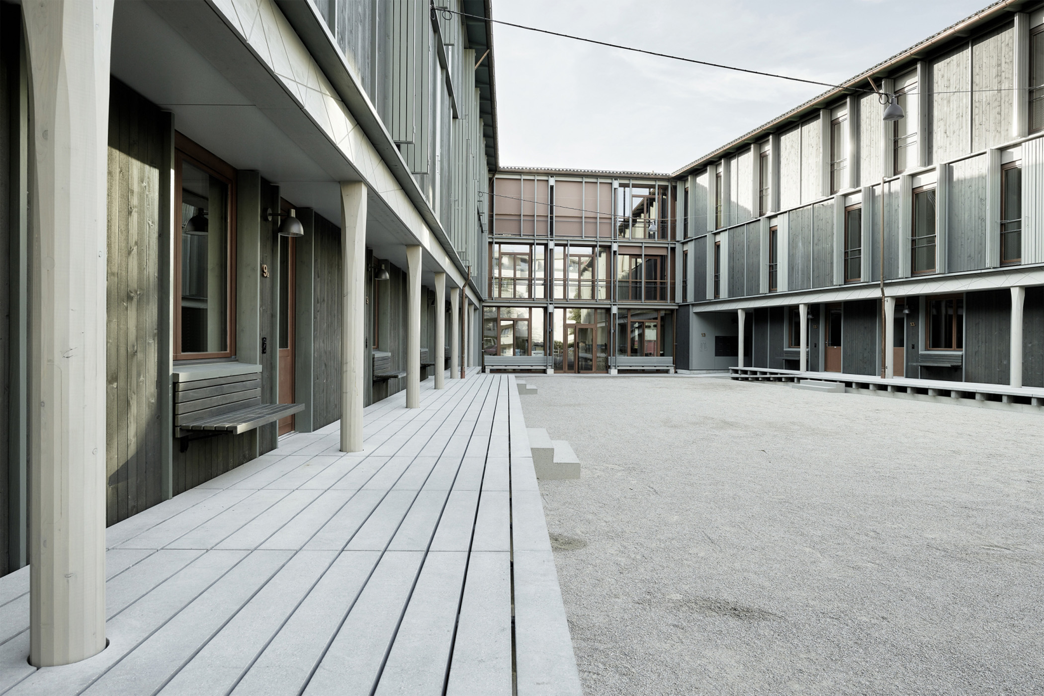 In den Höfen der Basler Innenstadt haben sich ganz allmählich immer mehr Einbauten breitgemacht. Garagen, Werkstätten und Schuppen, die den Hofraum verdrängten, werden nun vielerorts entfernt. Dabei gehen allerdings auch lebendige Soziotope verloren. Wohnen und Arbeiten waren hier genauso wenig voneinander geschieden wie die privaten Territorien zwischen Nachbarn. Dieser Geist des Gewerbehofs von gestern lässt sich nicht einfach in den Wohnhof von morgen kopieren, aber übersetzen. Deshalb spricht das neue Haus die Sprache der früheren transitorischen Hofeinbauten. Leicht und niedrig steht es im Hof, aus Holz gefügt wie schon die gewerblichen Vorgängerbauten. Fast möchte man meinen, es sei provisorisch hier, wäre da nicht die entschiedene städtebauliche Setzung.