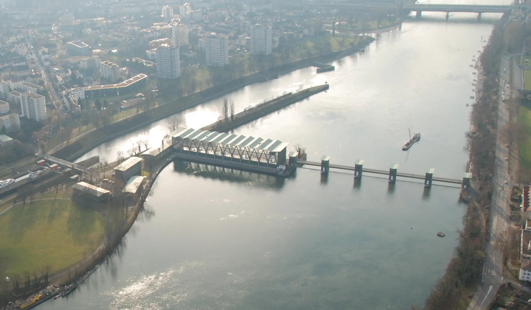 Das Projekt für ein Kraftwerk in Birsfelden entstand während des Zweiten Weltkrieges, als Brennstoffmangel zu einer starken Nachfrage nach elektrischer Energie führte. Nach mehreren Studien legte der Architekt Hans Hofmann 1947 ein Projekt vor, das er später samt Kraftwerksbau und Schifffahrtsanlagen umsetzte. Besonders beeindruckend war dabei die lichtdurchflutete Turbinenhalle mit den Y-formigen Fassadenstützen und dem gefalteten Dach.