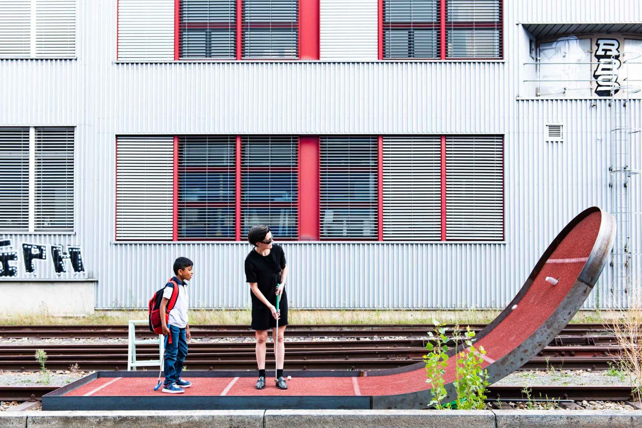 Urbaner Minigolfspass auf stillgelegten Gleisen